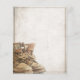 Announcement of retirement with old worn and weathered lace-up boots in vintage style. Gender-related text, the year, the honorary text, the date, the time, the place of celebration and RSVP can be customized.