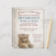 Announcement of retirement with old worn and weathered lace-up boots in vintage style. Gender-related text, the year, the honorary text, the date, the time, the place of celebration and RSVP can be customized.
