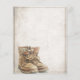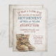 Announcement of retirement with old worn and weathered lace-up boots in vintage style. Gender-related text, the year, the honorary text, the date, the time, the place of celebration and RSVP can be customized.