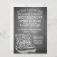 Announcement of retirement with old worn and weathered lace-up boots in chalkboard look. Gender-related text, the year, the honorary text, the date, the time, the place of celebration and RSVP can be customized.
