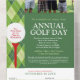 Annual Golf day corporate charity group event invitation. Golfing corporate event in classic green and light green and a hint of white and red plaid argyle diamond pattern graphic golfing style invitation. Perfect if you are planning a corporate golf event or charity day at the golf course. Invite your clients to support your cause and get teams of four. Fully customizable with the text of your choice and options to help to raise money and gain donations for your prizes. If a non-charity event, you can simply remove the charity information that is not required. Designed by www.mylittleeden.com