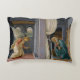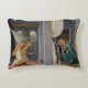 The Annunciation (1485) by Sandro Botticelli is a vintage Renaissance Era fine art religious portrait painting. A row of pillars divides the one point perspective scene with the Angel Gabriel on the left from the kneeling Virgin while she receives his divine message in her bed chamber.