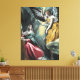 The Annunciation by El Greco, c. 1600, is an oil on canvas painting of the Virgin Mary visited by the angel Gabriel to tell her that she is with child, as told in the Gospels. El Greco's energetic, aggressively expressionist composition of flattened form and colour creates an image of religious fervour. A brilliant white dove flies towards the view at the centre of the composition, a symbol of the Holy Spirit. El Greco created some of the most memorable religious images in Western art.