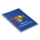 This notebook features a cartoon drawing of an anomalocaris, a popular Cambrian predator preserved in the Burgess Shale. The background features a sketch of the type of anomalocaris fossil often found in those strata. The default text reads "Stephanie's Paleontology Notes," but you can personalize it in the boxes above!