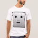 A simple square headed grey shaded robot with a blank look. has a kind of innocent expression like he hasn't crunched too many numbers. The design is included on both the front and back, but can be customized to your preference.