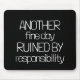 This fun minimalist black & white typography mouse pad is sure to put a smile on your face! Playful font and "Another fine day ruined by responsibility" phrase!