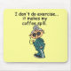 Mildred is a grey haired elderly lady with some pretty strong opinions! On this funny exercise theme design she states "I don't do exercise...it makes my coffee spill."! Humourous exercise theme T-shirts, mugs,bags, cards, stickers, magnets, keychains, ornaments, and more, sure to make yourself and others chuckle!