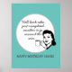 Funny birthday greetings features retro style woman with coffee cup and customizable "Well look who just completed another trip around the sun" text on vintage blue background. Customize birthday wish at bottom to include recipient's name, or add your own variation of Happy Birthday