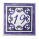 A hand drawn purple and grey frame around a purple house number with dark blue outlines and a pattern in the corners on a white background.