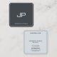 Custom Modern Elegant Silver Monogram Template Rounded Square Luxury Standard Semi-Gloss Paper Anthracite Grey Business Cards. Perfect for Real Estate Agents, Accountants, Realtors, Brokers, Attorneys, Lawyers, Doctors, Corporate Professionals, Stylists, Architects, Engineers, Directors, Managers, Consultants, Designers, Teachers, Musicians, all professions.