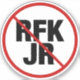 Democrats unite against RFK Jr. This political candidate for the 2024 election for president does not demonstrate democratic party values. A red strike through and a circle around the name of Robert F. Kennedy Jr on a political laptop sticker.