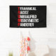 Anti Trump Funny Acronym banner in black. It features a word poem describing his character: tyrannical, racist, unqualified, misogynistic panderer. Resist this president and continue to support the resistance efforts for equal rights and basic human decency in America. Fight for freedom in our country for all races and genders.