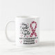 Meaningful design featuring an awareness ribbon in burgundy colour and the quote "Her fight is our fight. Antiphospholipid syndrome awareness."