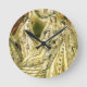 I needed a clock for my bathroom. Yes, my bathroom. So that it would "fit" and look right in the space, I needed something that was frameless, and contemporary. This clock has the water/nature/serene look I wanted. It looks great on my bathroom wall! The blue is well suited to resemble water and the beige matches the vanity. I decided to customize it with inspirational words....perfect! This was my first order, and now, I will certainly come back for future purchases. Very nice, the printing is beautiful and I'm pleased with it.