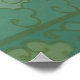 Vintage Chinese Green Nature Design Depicting the Land, Sea, and Air with Running Horses - This classic Chinese design shows horses running around the blueish green intricate design with air, land, and sea.