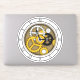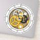 This eye-catching design is a trompe l'oeil drawing of a vintage style clock with Roman numerals and its inner gears and wrokings in realistic perspective. Ideal for fans of steampumk, times travel stories, or mechanical things, this decal will look great on your windows, appliances, future, or smaller items such as books and electronics.