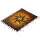 An antique compass rose etching is on a unique background, featuring an antique map of England overlaid on an antique book cover.