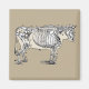 An antique cow skeleton from a vintage book from the 1800s, showing all the interesting cow parts.