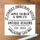 Antique Dealers Rubber Stamp. Company Name, Business type, plus Two Lines of Address in a circular effect. A business rubber stamp for all kinds of stationery items, envelopes, packages etc. Stamp your return address easily and stylishly.