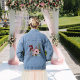 Veste Denim florale à effet antique peinte à la main qui peut être customisé avec l'initiale ou l'alphabet. Style tendance et Urban Chic. Idéal pour la fête de Bachelorette, les pique-niques d'automne, les rassemblements de Thanksgiving, les fêtes d'action d'amitié.