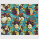 antique flower bouquets with roses on blue pattern Wrapping Paper I created from vintage elements.