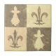 This classic checkerboard style tile faux encaustic pattern features fleur-de-lis motif (lily flower) in monochrome beige cream tones. As a heraldic symbol, the lily flower has a long history and was used on coats of arms, and as a floor tile pattern popular in the Middle Ages (especially in France and England) and during the Victorian Gothic Revival style. This traditional fleur-de-lis tile can fit surprisingly well into several modern home decor styles by providing a classic focal point that contrasts with contemporary elements.