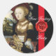 Beautiful blonde young girl with gorgeous dress and gold jewellery with red hat and white feathers holding a plate full of red yellow grapes,grape vines ,red green fall leaves with a  lake landscape in background by German painter Lucas Cranach the Elder 1530 .Classic,elegant vintage style digital collage .with Flemish and German paintings.This classy Renaissance design with a red wax seal and stripe is perfect for Autumn weddings,anniversary celebrations,Sweet 16 birthdays,save the date,thank you cards ,baby showers ,holiday parties,family reunions .it can be use also as business invitations for nutritionists,dieticians,caterers, food service,preparation or restaurant ,catering ,wine industries.