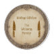 Add a touch of old-world elegance to your culinary space with this round tempered glass cutting board. Featuring a weathered parchment aesthetic and an intricate Victorian-style filigree border, this board is accented with classic chef's knife silhouettes. Perfectly customizable with your family name, this heat-resistant and non-porous surface serves as a durable prep station or a stunning vintage-inspired centerpiece for serving cheeses and charcuterie.