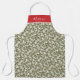 Festive and charming, this holiday baking apron features a pattern of vintage American holly branches with leaves and berries on a white background. The top of the apron has a band of red with custom text in a fun and feminine font to make this a special gift for a grandma that loves her winter baking for the Christmas holidays.