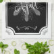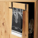 This Bon Appetit kitchen towel has a antique kitchen sign design with classic label shape in black, grey starburst, crossed silverware and the saying “Bon Appetit” in white printed on top. This towel makes a great house warming gift for anyone with a black and white kitchen.