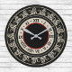 This antique looking design features black Medieval-looking scrollwork with Roman numerals. The vintage looking design is predominately black and ecru, with a thin ring of burgundy around the centre of the clock face.