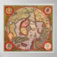 Vintage illustration antique world map featuring a view from the North Pole including the Arctic Circle, ocean and surrounding continents. By cartographer Gerardus Mercator, 1595.