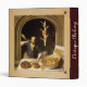 A baker blowing his horn.Flemish oil painting from 1681,of ancient bake shop .This classic design is perfect for nutritionists,dieticians,caterers, food service,preparation or restaurant ,catering ,.