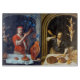 A baker blowing his horn.Flemish oil painting from 1681,of ancient bake shop .This classic design is perfect for nutritionists,dieticians,caterers, food service,preparation or restaurant ,catering ,.