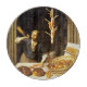 A baker blowing his horn.Flemish oil painting from 1681,of ancient bake shop .This classic design is perfect for nutritionists,dieticians,caterers, food service,preparation or restaurant ,catering ,.