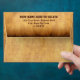 Antique Paper Look Personalized Rustic Envelopes for him. Designed for our vintage sports invitations and rustic invitations. Type in your Return Address Envelope text or Delete it. Choose several personalized envelope sizes. CALL Designers Rod or Linda: 239-949-9090 for CHANGES to the design, product, personalization, etc. We will create RSVP's, Invitations, Thank You's, Rustic Party Supplies for men and women.