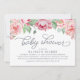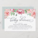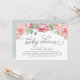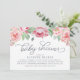 Choose these beautiful floral baby shower invitations to celebrate the mama to be in elegant style. Vintage floral design features blush pink watercolor peonies at the top with decorative typography accents and smoky blue grey lettering. Personalize with your desired baby shower invitation wording using the template fields.