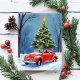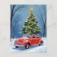 Antique Red Car Christmas Tree Holiday Postcard