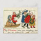 C'est une charmante carte postale vintage, vers 1922, montrant des enfants sucrés tous habillés pour Noël ! Peut-être sont-ils en route pour la maison de grand-mère, avec des cadeaux, des couronnes, un traîneau et tout.