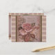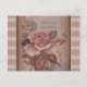 A very pretty postcard featuring a pretty "painted" style old fashioned English pink rose, surrounded by victorian floral decoration and set against a striped background...a must for those that love vintage floral styles.
