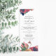 This is a rack card or wedding ceremony program. Antique colourful roses for a wonderful bohemian themed wedding. Vintage style florals. Red and pink roses. Stylish Boho wedding.
