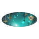 Gold, antique keys with gears and dials hang on gold chains on luminous green background.