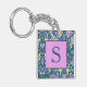 Antique Style Flowers and Birds Pattern Monogram Keychain