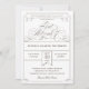 A formal, elegant yet fun thematic design borrowing elements from a vintage admissions ticket. French grey instead of black give it a more modern feel. Choose your paper type, die cut and change the colours as desired.