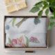 A beautiful antique illustration for crafting or for one of the most unique tissues ever. A red and gold painted tulip is gathered into a slender bouquet with wine and white carnations, tied with a blue ribbon. A little dove and colourful butterflies complete the vignette.