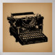 An antique typewriter design with a classic illustrated old fashioned typewriter in black on an aged paper style brown background!