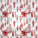 antique victorian animal toile anthropomorphic red fabric