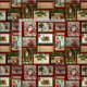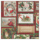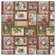 Fun and festive holiday pattern featuring vintage Victorian era Christmas cards with evergreens and decorative borders on red damask background.