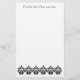 White personalized stationery with an elegant black damask border at the bottom and space for your name or other text at the top. Very classy and elegant.