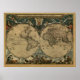 Antique World Map by Joan Blaeu, circa 1664 Poster